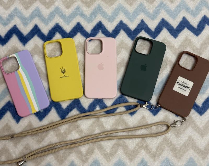 Чохли на iphone 13 pro у відмінному стані👌🏼 - пудровий та зелений чохли оригінальні з mag safe, не ковзає у руках завдяки покриттю софт-тач, бортики чохла злегка виступають над екраном та камерою захищаючи тендітне скло. по 250грн. - різнобарвний та жовтий в середині мають мʼяку підкладку по 150грн. - коричневий силіконовий в середині без покриття 100грн.