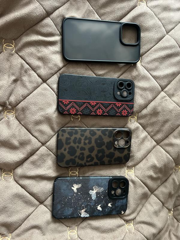 Продаю набір стильних чохлів у відмінному стані: 1. ✅ Мінімалістичний чорний – строгий дизайн, з матовим напівпрозорим ефектом. 2. 🖤 З візерунком та орнаментом – з українськими етнічними мотивами, чітка текстура. 3. 🐆 Леопардовий принт – трендовий та елегантний. 4. 🦋 З метеликами – ніжний дизайн з блискітками та рельєфною поверхнею. 🔹 Стан: як нові 🔹 Продаю разом або окремо 🔹 iPhone 13 Pro Max (точне прилягання під камери) 🔹 Ціна: від 100 грн / штука, за комплект — знижка