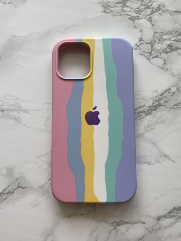 Чохол на iPhone 12 pro Яскравий силіконовий чохол із веселковим дизайном та логотипом Apple. Користувалась ним лише кілька місяців — стан дуже хороший, без тріщин і пошкоджень. М’який на дотик, приємно тримається в руці та добре захищає телефон. Продаю, бо більше не користуюсь.