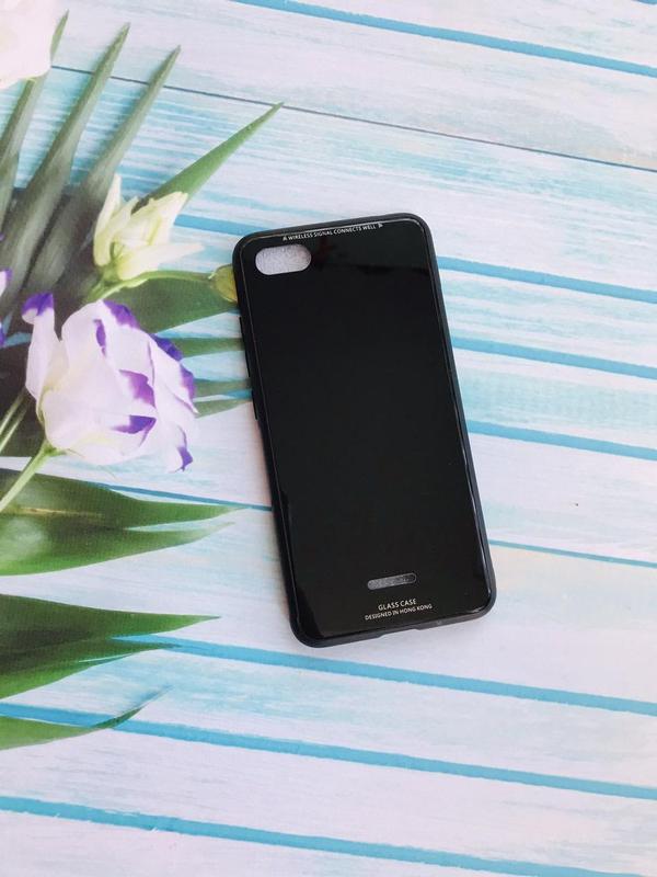 Силиконовый чехол glass case со стеклянной задней панелью для xiaomi redmi 6a чёрный