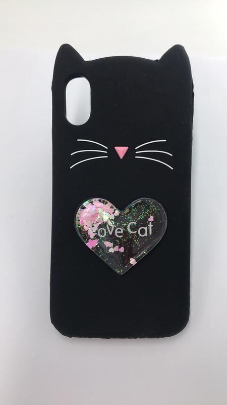 Силиконовый чехол 3d case с переливающимися блестками на iphone x/xs :: кот чёрный