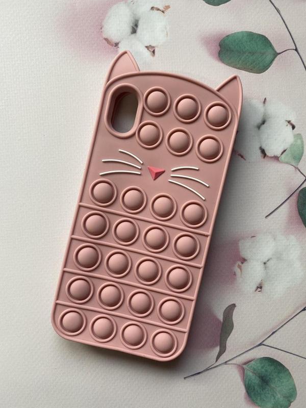 Силиконовый чехол поп ит антистресс поп-ит pop it на iphone xr попит котик розовый