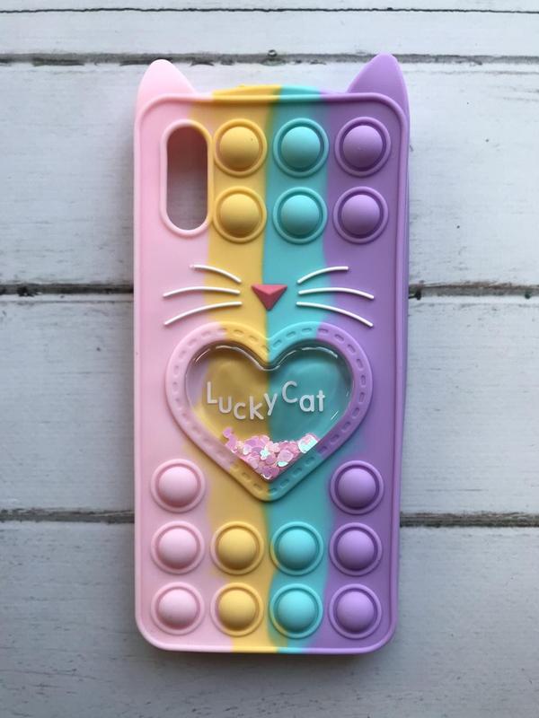 Чехол попит антистресс поп-ит pop it для xiaomi redmi 9a поп ит котик с сердечком розово-ф...