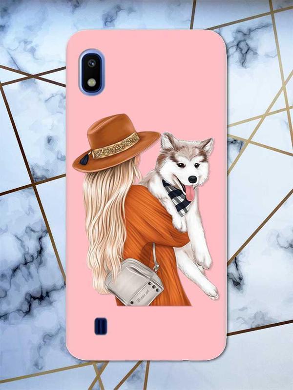 Матовый розовый чехол на samsung galaxy а10 (2019) а105 дизайн девушка с собачкой принт 11...