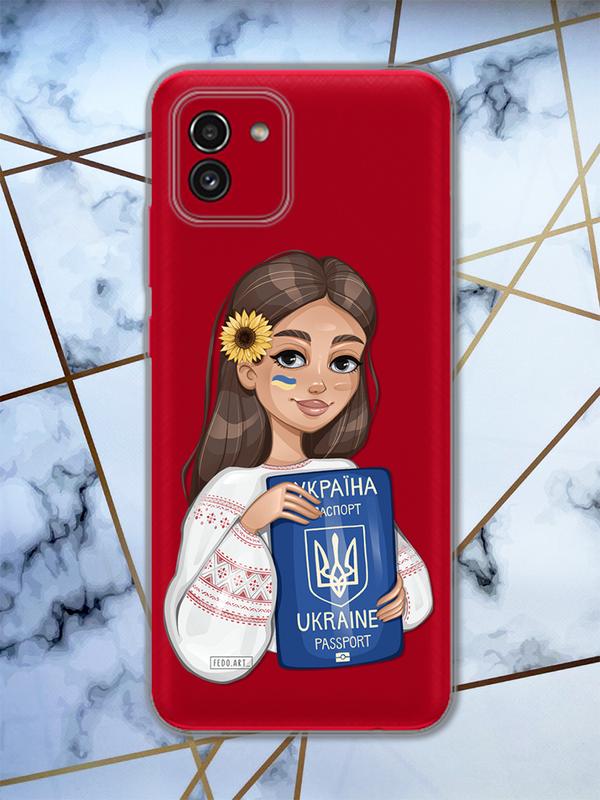 Прозрачный чехол для samsung galaxy a03 / a035 с патриотическим дизайном "девушка с паспор...