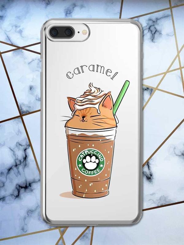 Прозрачный чехол на iphone 7 plus/8 plus :: капучино котик (принт 97)