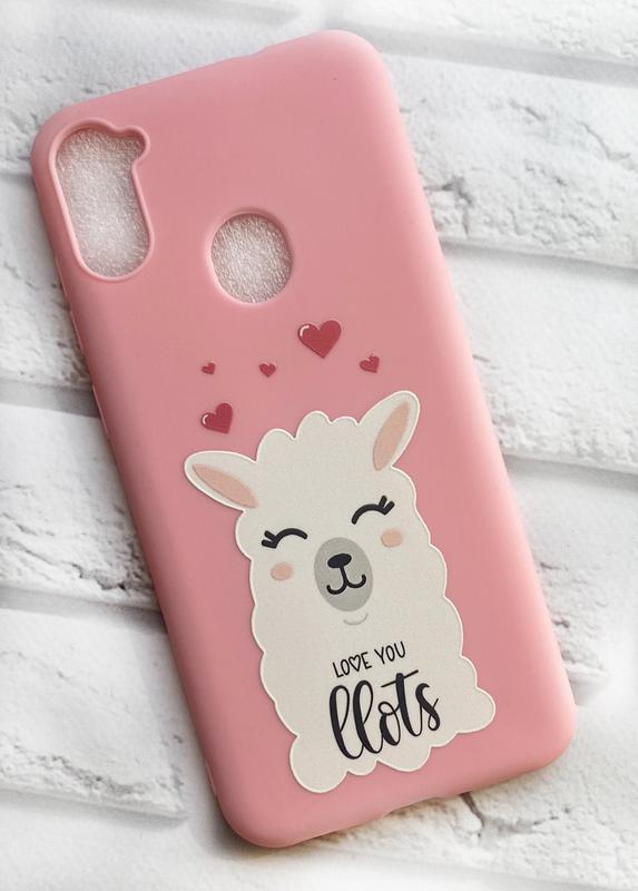 Матовый розовый чехол на samsung galaxy а11 рельефный дизайн лама принт 94