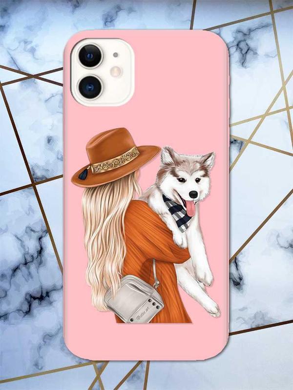 Матовый розовый чехол на iphone 11 :: девушка с собачкой (принт 115)