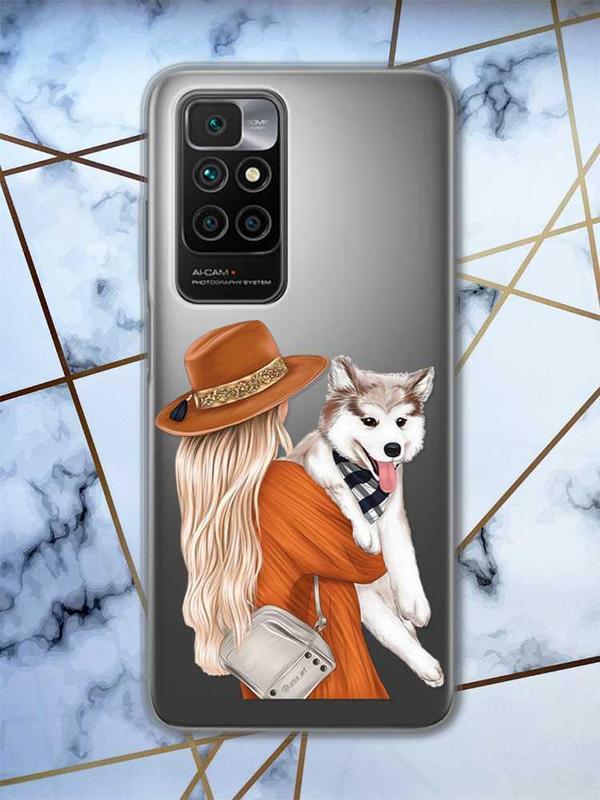 Прозрачный чехол для xiaomi redmi 10 дизайн девушка с собачкой принт 115