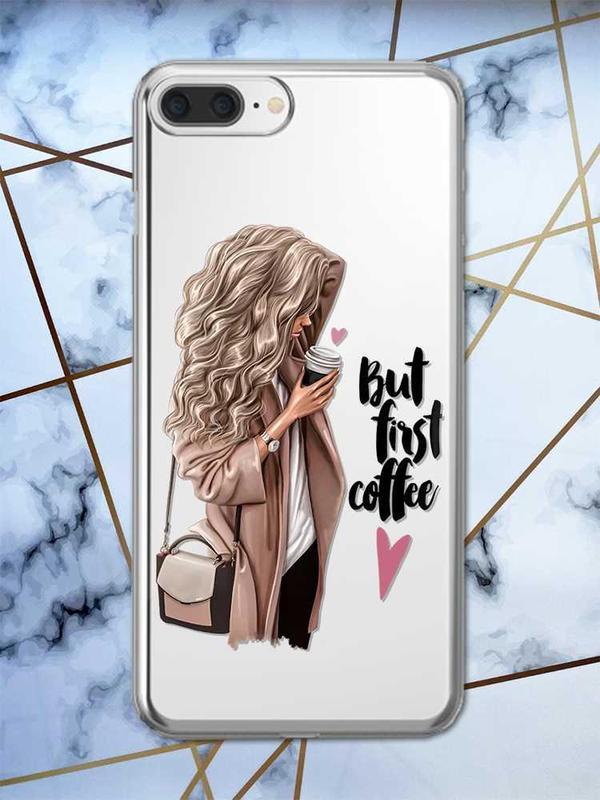 Прозрачный чехол на iphone 7 plus/8 plus :: девушка с кофе (принт 114)