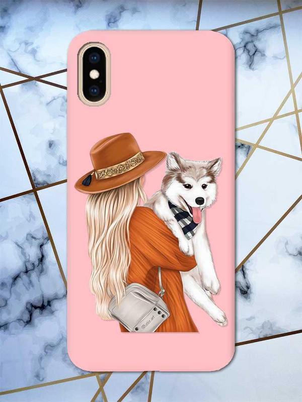 Матовый розовый чехол на iphone xs max :: девушка с собачкой (принт 115)