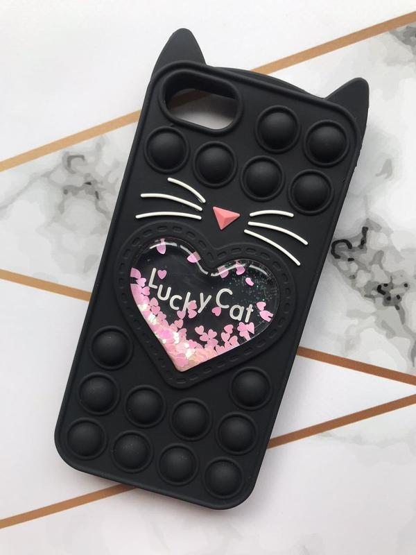 Чехол попит антистресс поп-ит pop it на iphone 7/8/se 2020 :: поп ит котик черный с сердеч...