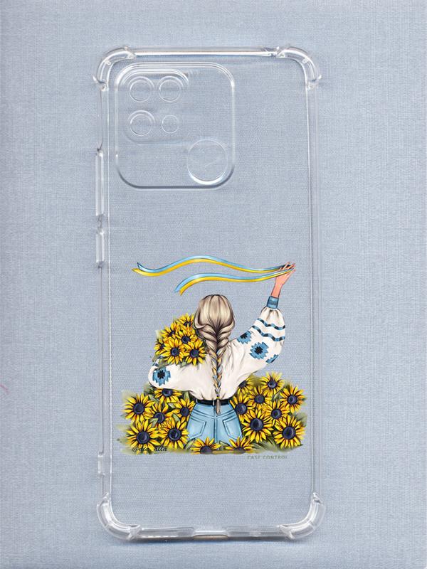 Чехол с утолщенными углами на xiaomi redmi 10c :: девушка с лентой (патриотический принт 2...