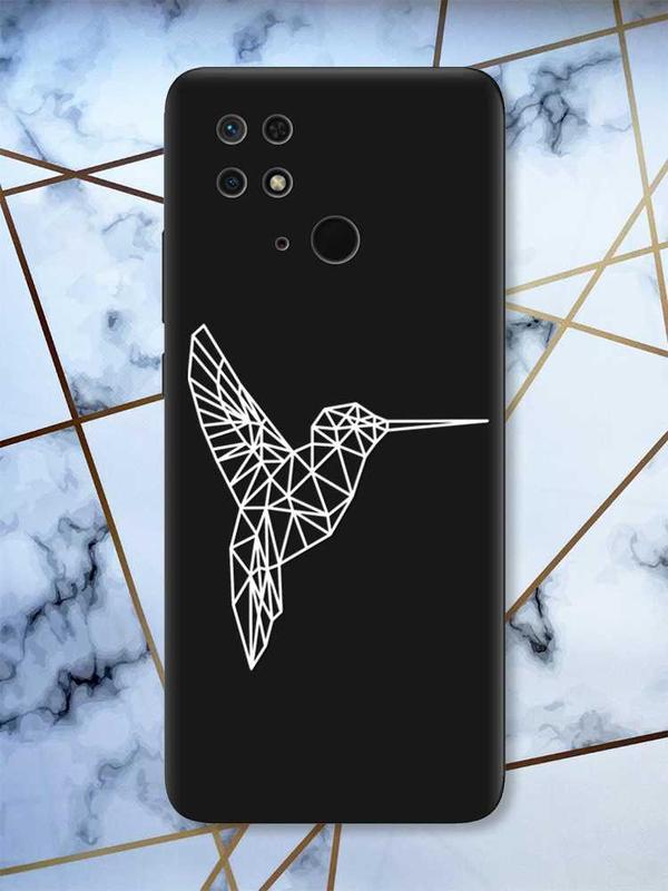Матовый черный чехол на xiaomi redmi 10c колибри принт 123
