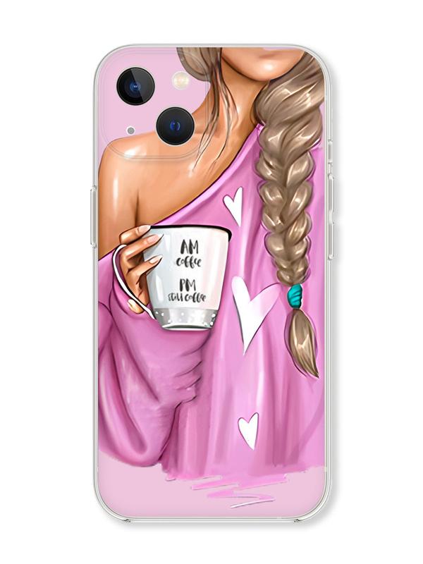 Чехол на iphone 14 plus :: девушка с кофе (принт 58)