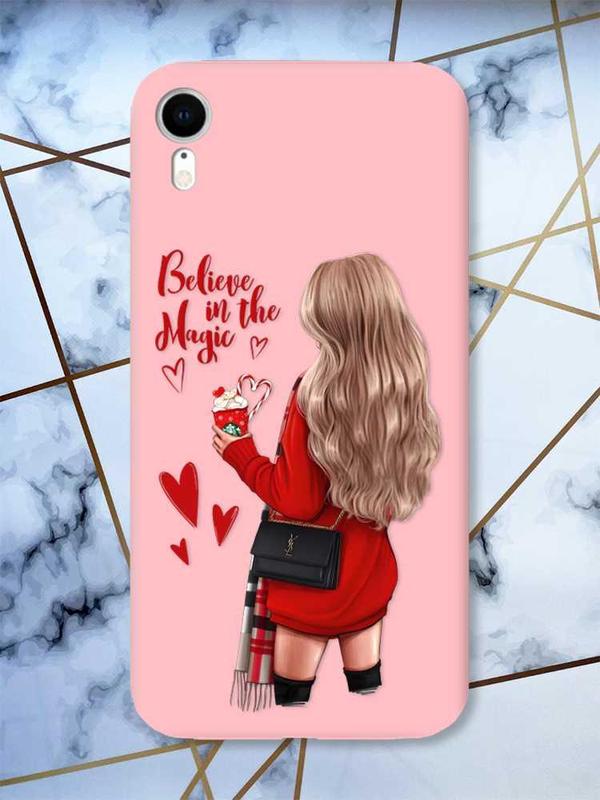 Матовый розовый чехол на iphone xr :: девушка с кофе (принт 137)
