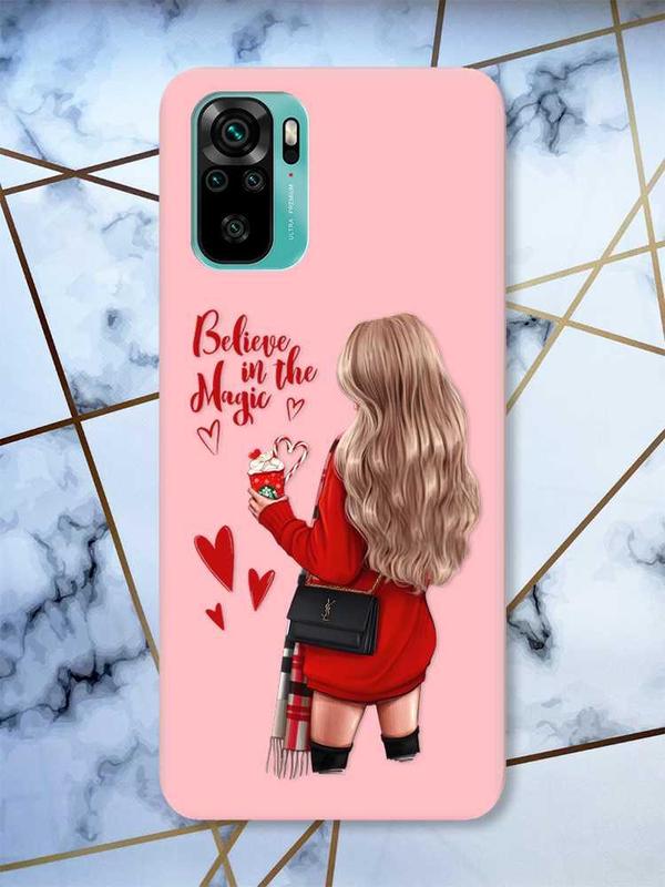 Матовый розовый чехол на xiaomi redmi note 10 / note 10s девушка с кофе принт 137