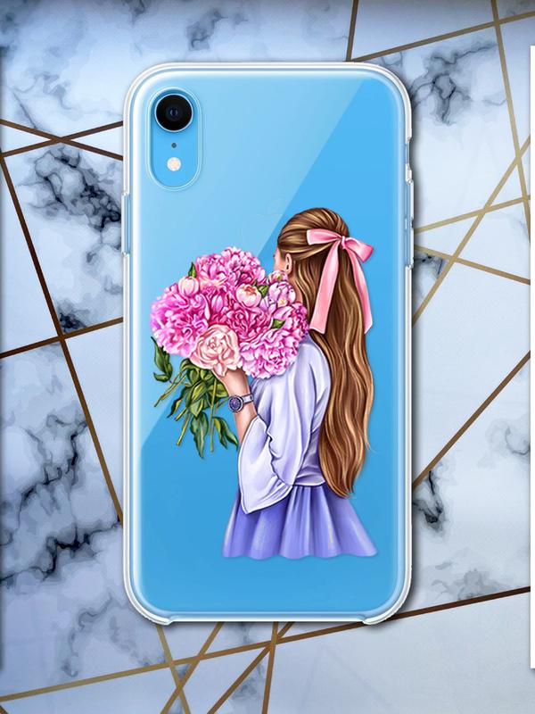Прозрачный чехол на iphone xr :: девушка с пионами (принт 11)