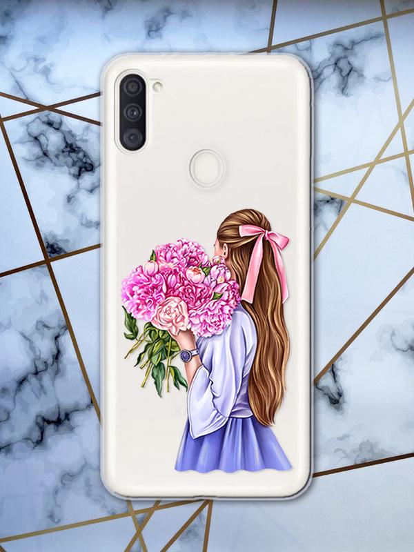 Прозрачный чехол для samsung galaxy а11 с объемной печатью "девушка с пионами" принт 11