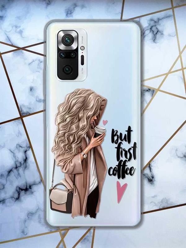 Прозрачный чехол для xiaomi redmi note 10 pro/10 pro max :: девушка с кофе (принт 114)