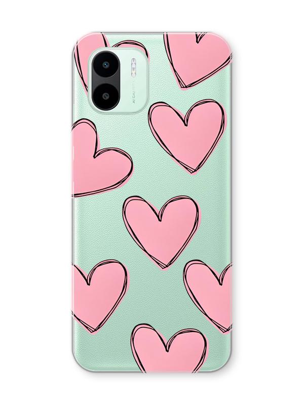 Прозрачный чехол на xiaomi redmi a1 сердечка розовые (принт 78)