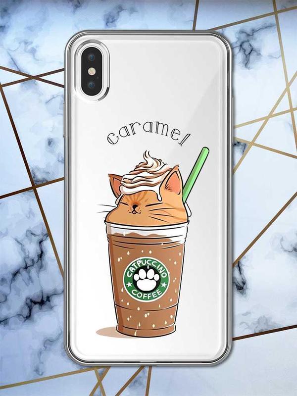 Прозрачный чехол на iphone xs max :: капучино котик (принт 97)