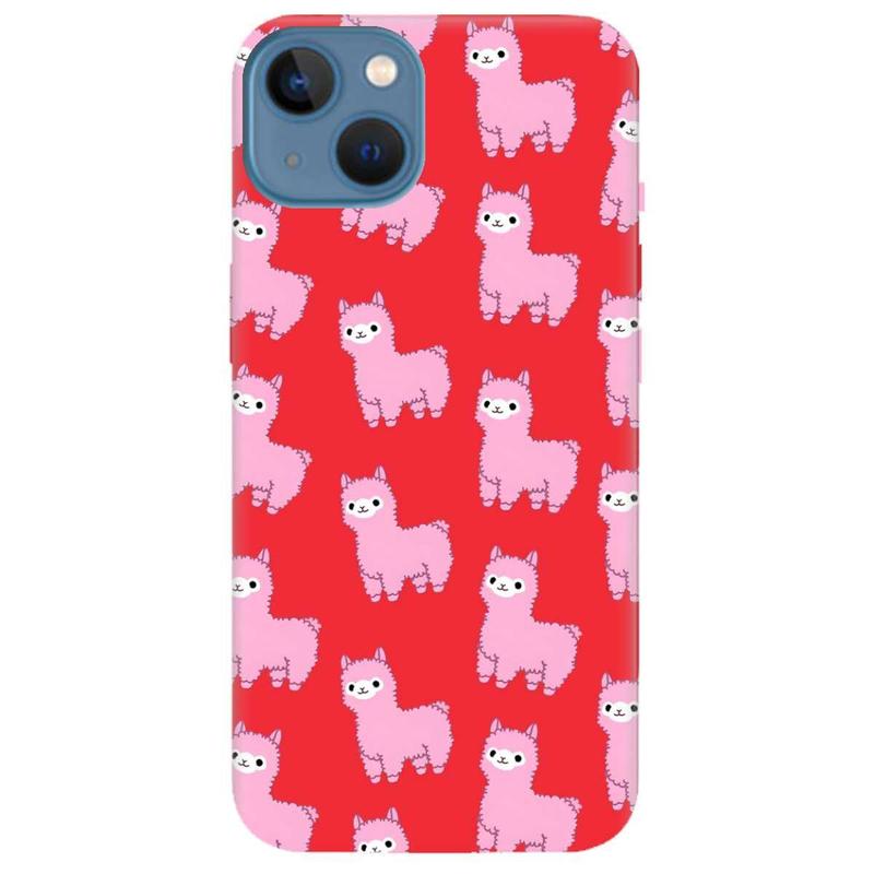 Матовый красный чехол на iphone 13 :: ламы розовые (принт 101)