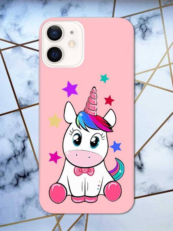 Матовый розовый чехол на iphone 12/12 pro :: единорог (принт 102)