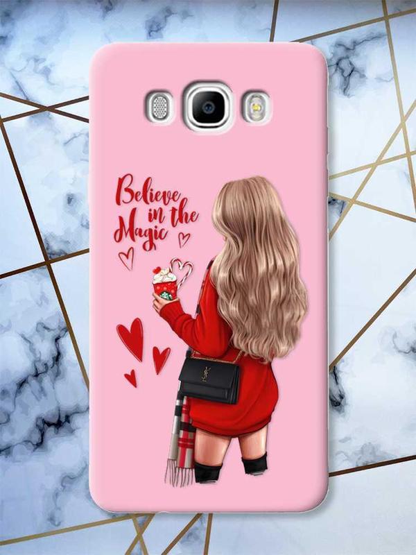 Матовый розовый чехол на samsung galaxy j7(2016) j710 девушка с кофе принт 137