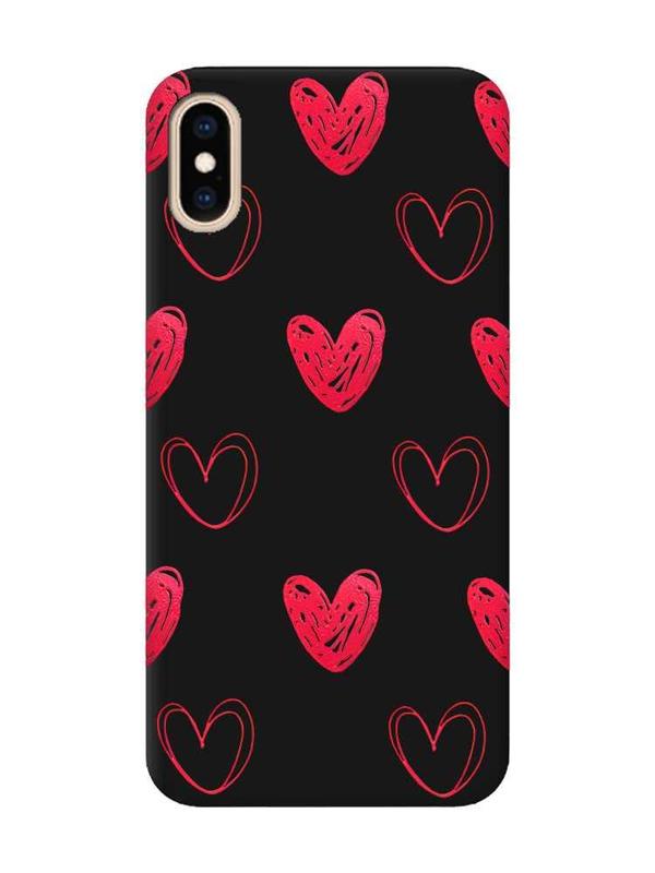 Матовый черный чехол на iphone xs max :: сердечка красные (принт 77)