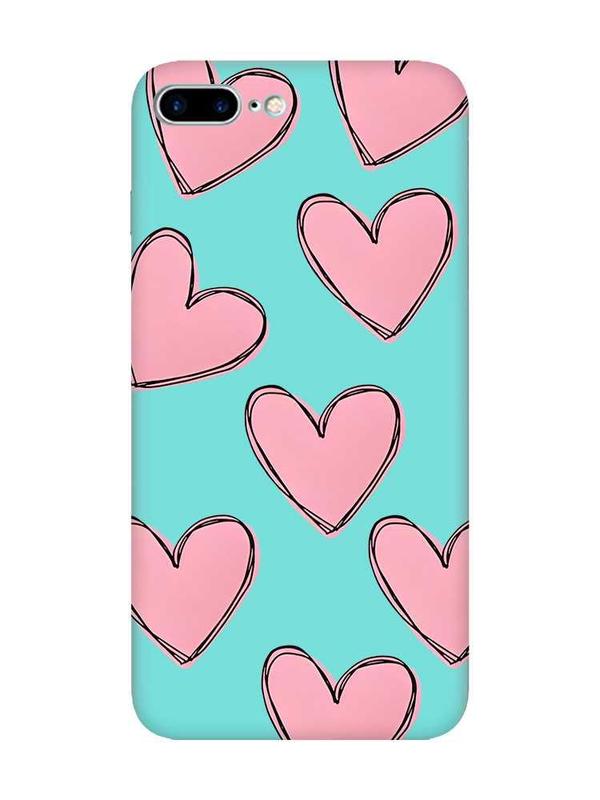 Матовый бирюзовый чехол на iphone 7 plus/8 plus :: сердечка розовые (принт 78)