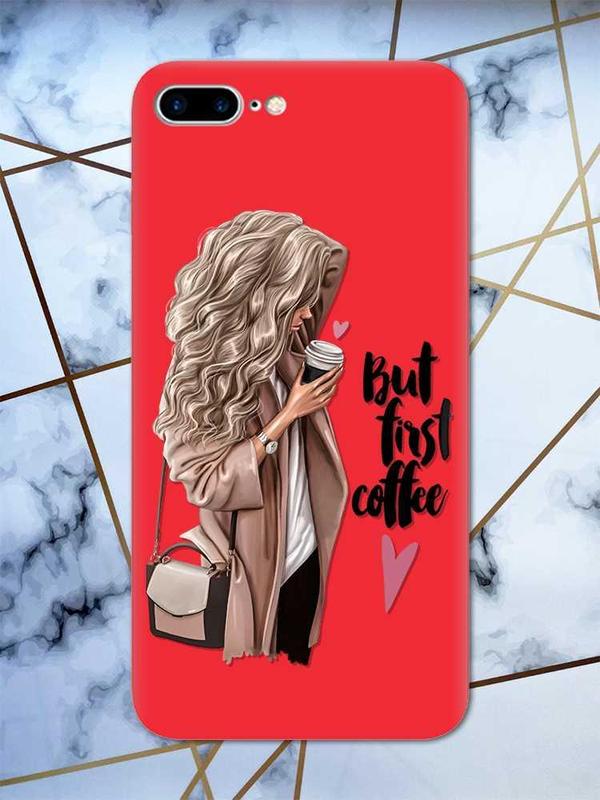Матовый красный чехол на iphone 7 plus/8 plus :: девушка с кофе (принт 114)