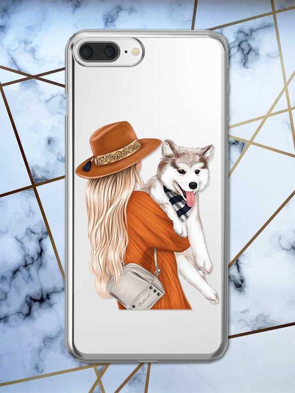 Прозрачный чехол на iphone 7 plus/8 plus :: девушка с собачкой (принт 115)