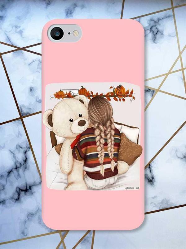 Матовый розовый чехол на iphone 7/8/se 2020 :: девочка с мишкой (принт 117)