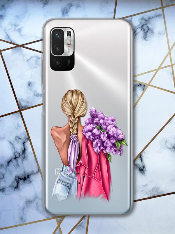 Прозрачный чехол на xiaomi redmi note 10 5g девушка с сиренью принт 7