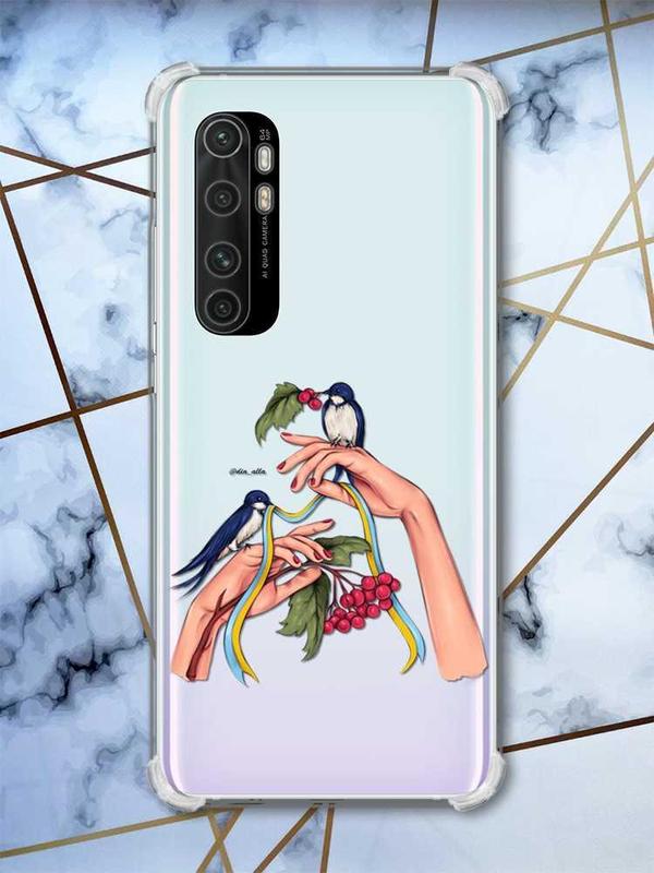 Чехол с утолщёнными углами для xiaomi mi note 10 lite ласточки (патриотический принт 15)