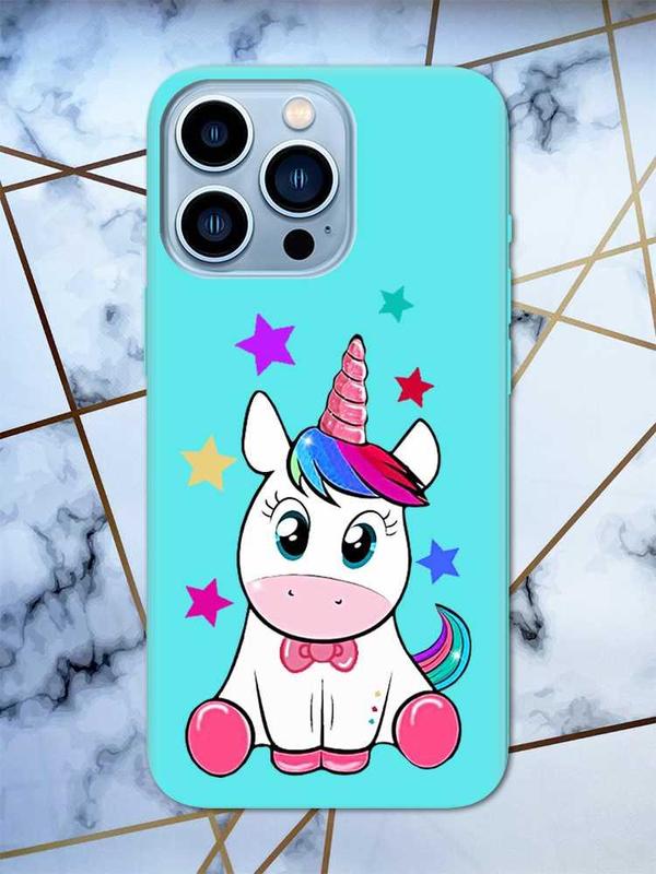 Матовый бирюзовый чехол на iphone 13 pro max :: единорог (принт 102)
