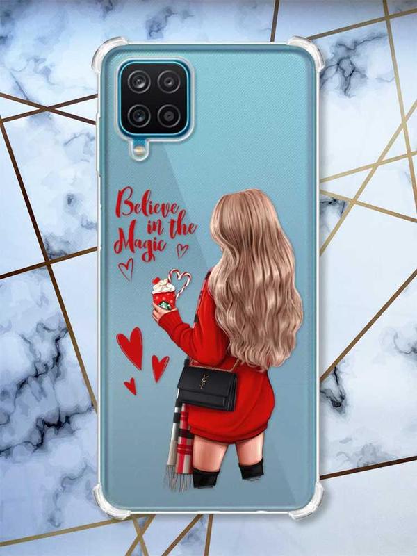 Чехол с утолщенными углами на samsung a12 4g девушка с кофе принт 137