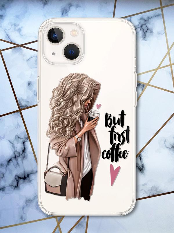 Чехол с защитой камеры на iphone 14 plus :: девушка с кофе (принт 114)