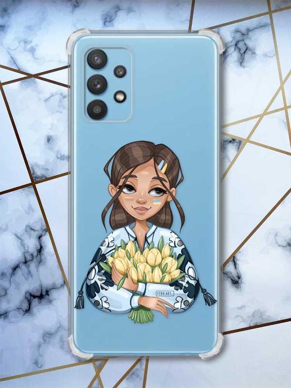 Чехол с утолщёнными углами для samsung galaxy a32 девушка с тюльпанами (патріотичний принт...