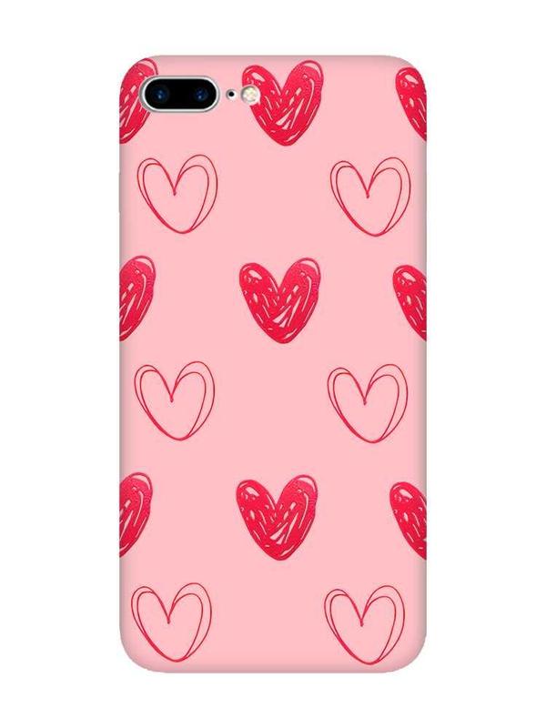 Матовый розовый чехол на iphone 7 plus/8 plus :: сердечка красные (принт 77)