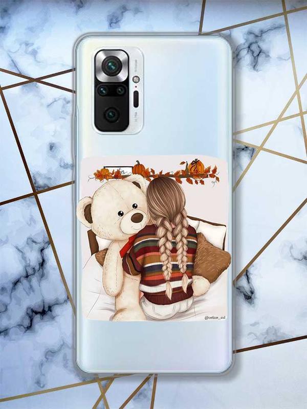 Прозрачный чехол для xiaomi redmi note 10 pro/10 pro max :: девочка с мишкой (принт 117)
