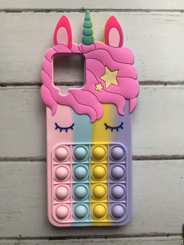 Чехол попит антистресс поп-ит pop it для samsung galaxy a12 единорог однорог розово-фиол.