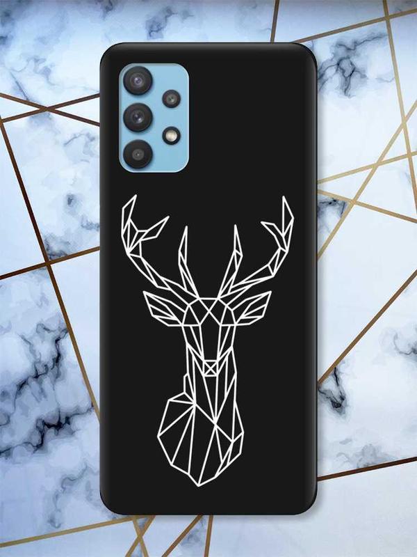 Матовый черный чехол на samsung galaxy a32 олень (принт 129)