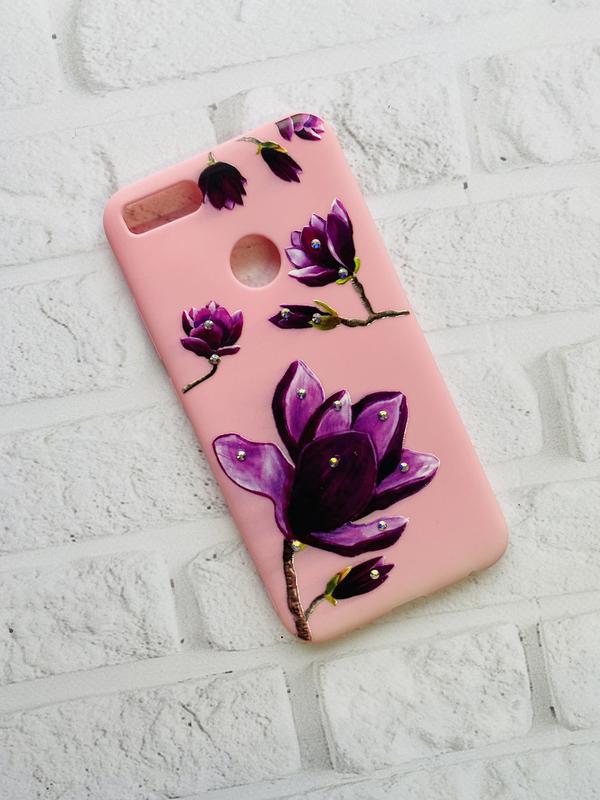 Силиконовый чехол с рисунком и камнями для xiaomi redmi a1 / 5x фиолетовый цвет магнолии