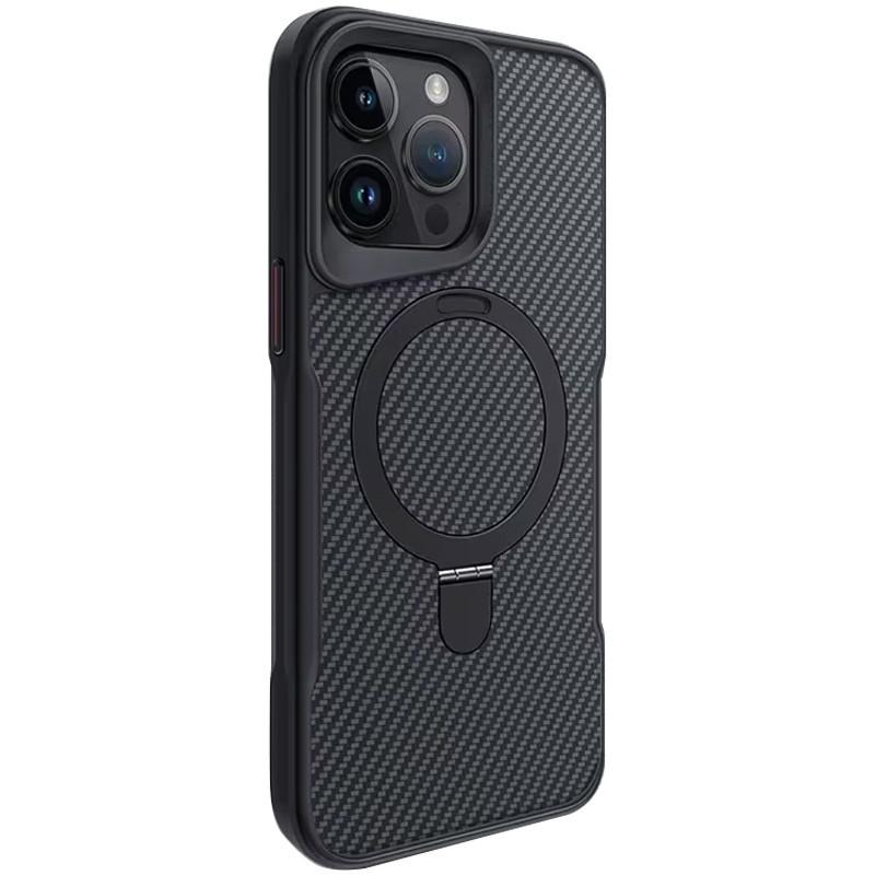 Tpu+pc чехол metal buttons with magsafe carbon ring для apple iphone 15 pro max (6.7") чер...