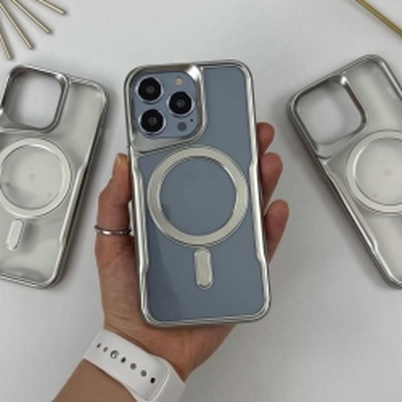 Чехол с magsafe для айфон 13 про макс. case for iphone 13 pro max esthetic серебряный
