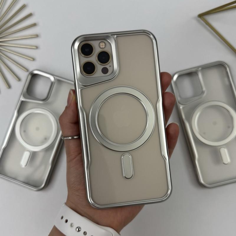 Чехол с magsafe для айфон 12 про макс. case for iphone 12 pro max esthetic серебряный