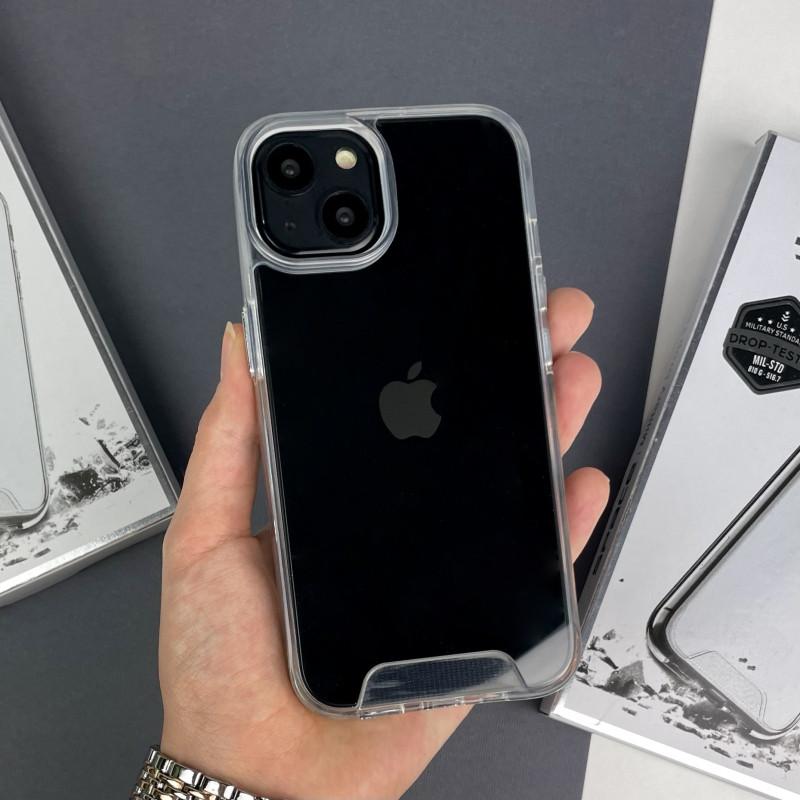 Чохол Space Case - -- це міцний захисний чохол для iPhone, який виготовлений із двох матеріалів -- пластику і силікону. Також на кнопки гучності та блокування встановлені металеві накладки, які забезпечують комфорт під час натискання. Чохол не перешкоджає бездротовій зарядці. Весь чохол по периметру та виріз для камери мають підняті стінки, у такий спосіб забезпечуючи захист від потертостей і подряпин. Особливості: - Щільно сидить на телефоні - Не збільшує смартфон у розмірах - Надійно захищає від падінь - Гумові бортики прозорі Захист військового стандарту -- завдяки поєднанню двох якісних матеріалів -- м'якого TPU та жорсткого PC ці чохли відзначені сертифікатом захисту військового стандарту MIL-STD 810G -- 516.7. Матеріали високої якості злилися воєдино в місці, не тільки для чудового захисту, а також дають чохлу довго залишатися прозорим. Чохол зі стильним дизайном, для топових ґаджетів за чудовою ціною.