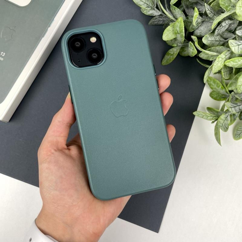 Leather case with magsafe for iphone 13. кожаный кейс для айфон 13 светло-зеленый